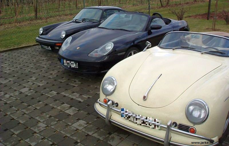 Januar 2005 - Gruppenfoto: Porsche 911 Carrera 3.2 Modelljahr 1986 - Porsche Boxster 986 2.7 Modelljahr 2004 - Porsche 356 Vor-A 1500 Speedster Modelljahr 1955