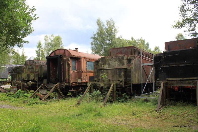 Mit nur wenigen Freiwilligen ist die Aufarbeitung der Fahrzeuge sehr schwierig. Einzelne Loks zumindest teilweise aufgearbeitet worden. Die Front ist wieder sehenswert, der Rest bleibt rostbraun, unvollständig und mit großflächig weggerosteten Blechen.
