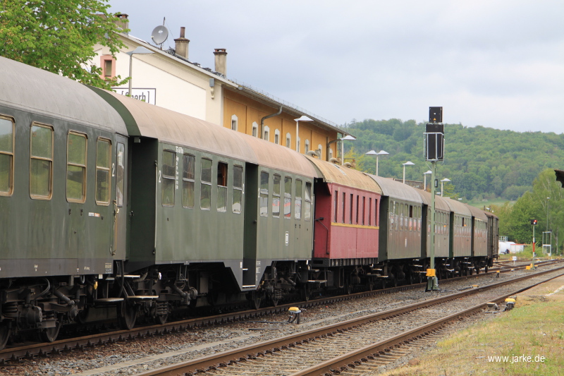 *Ein schöner Frühjahrsausflug für die ganze Familie in die Wetterau.* ist im Jahresprogramm der Museumseisenbahn nachzulesen. Bei wechselhaften April - von Sonne bis Regen war alles dabei - ging es in die Wetterau. Ab Friedberg wurde die Hauptstrecke verlassen und eine teils eingleisige Strecke in malerischer Landschaft befahren. Über Nidda ging es in den kleinen Ort Stockheim (Glauburg). Das dortige Bahnhofsfest bot Unterhaltung für die Kleinen, Sonderausstellungen om Bahnhof, zahlreiche kulinarische Angebote als auch den Besuch beim örtlichen Modelleisenbahnclub. Die Besucher konnten auch spontan ein Ticket für die Pendelfahrt Stockheim <-> Nidda beim Schaffner lösen. Familienfreundliche Fahrpreise dürften viele Familien *angefixt* haben, zukünftig wieder mit der Dampflok mitzufahren und bei den Kleinsten (selbst die Mitnahme von Kinderwagen im BDm Wagen war kein Problem) die Faszination Dampfeisenbahn ausgelöst haben. Eine tolle Werbung für ein schönes Hobby.