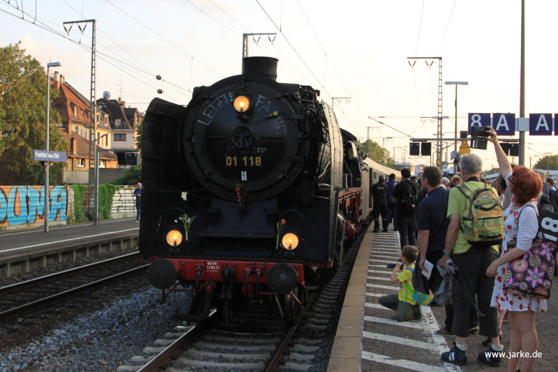 Ankunft im Frankfurt/Main Südbahnhof - mit viel Dampf und Sound - Abschied von 01 118 (03.08.2018)