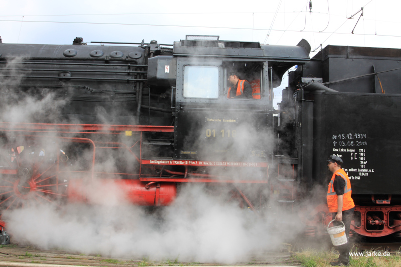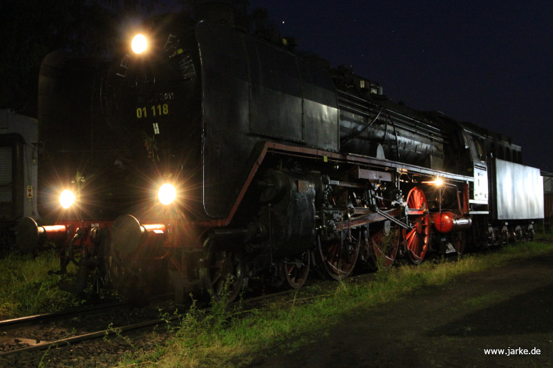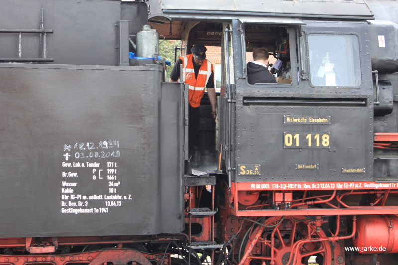 Am Sonntag, den 4.8.0219, wurde 01 118 zum neuen Besitzer überführt. Hier steht 01 118 in einer beheizten Halle. Allerdings ist sie dort nicht öffentlich zugänglich abgestellt.