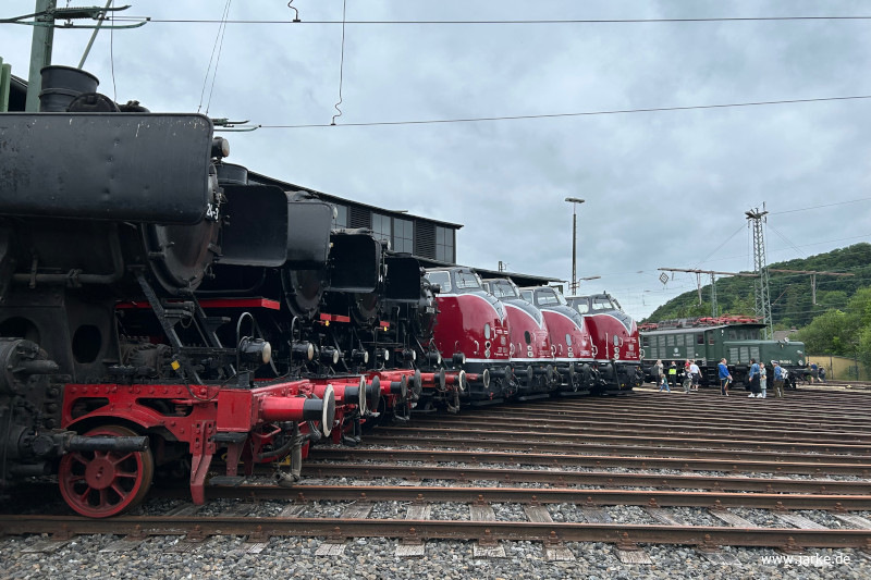 Am Sonntag war ein Sonderzug mit 23 058 zu Gast (ich war nur am Samstag vor Ort und habe den Zug daher nicht gesehen). Bereits am Samstag war der AKE Sonderzug aus Köln mit mehreren Triebwagen und Steuerwagen zu Gast.