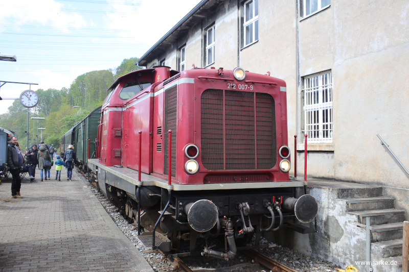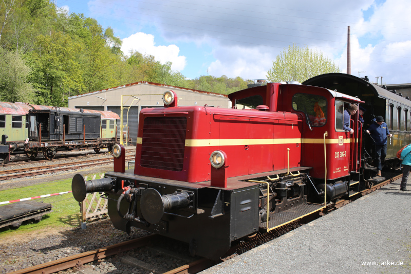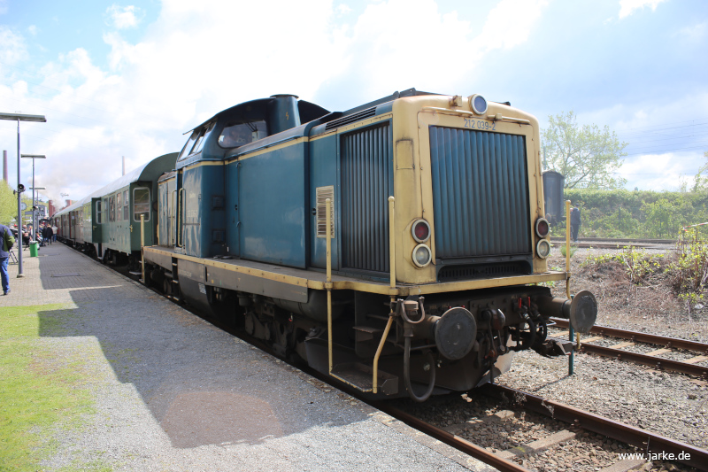 Ein zweiter Pendelzug fuhr zwischen dem Museum und dem S-Bahnhof Bochum Dahlhausen. Köf 3 332 306-0 und 212 007-9 waren mit 2 Donnerbüchsen und einem MCi unterwegs.