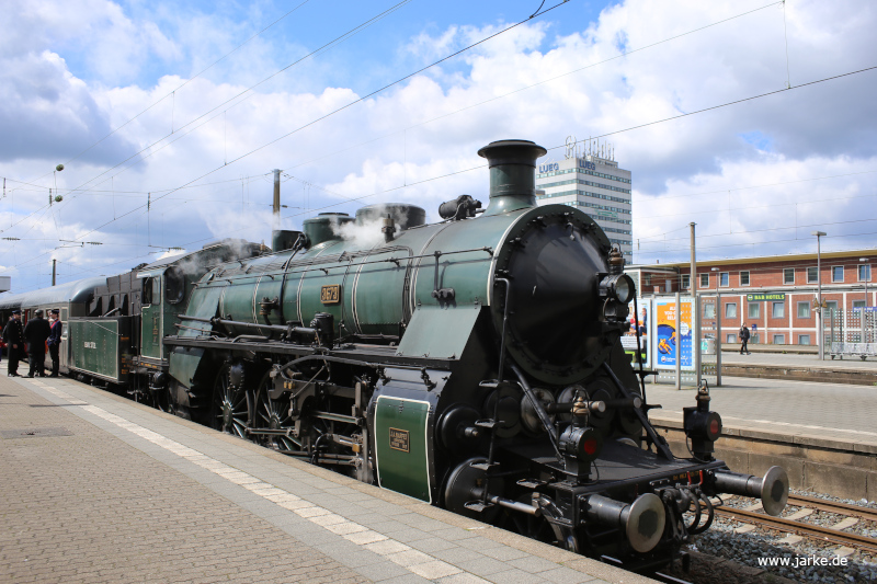 Erstmals seit Ablauf der Fristen vor mehr als 5 Jahren konnte 38 2267 (eine preußische Dampflok der Baureihe P8) wieder unter Dampf präsentiert werden. Dampflok D5 der Hespertalbahn aus Essen stand zusätzlich für Führerstandsmitfahrten zur Verfügung. - 40 Jahre Eisenbahnmuseum Bochum (29./30.04.2017)