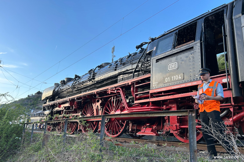 Für die Rückfahrt war 01 1104 von Faszination Dampf e.V. eingeplant, die bis Köln den Zug ziehen sollte. Die Lok ist Baujahr 1940, wurde nach der Ausserdienststellung nach England verkauft und kam 1996 nach Deutschland zurück. Von 2009 bis 2023 erfolgte die betriebsfähige Aufarbeitung,. Seit Juni 2023 wird sie deutschlandweit für Sonderzüge vermietet.