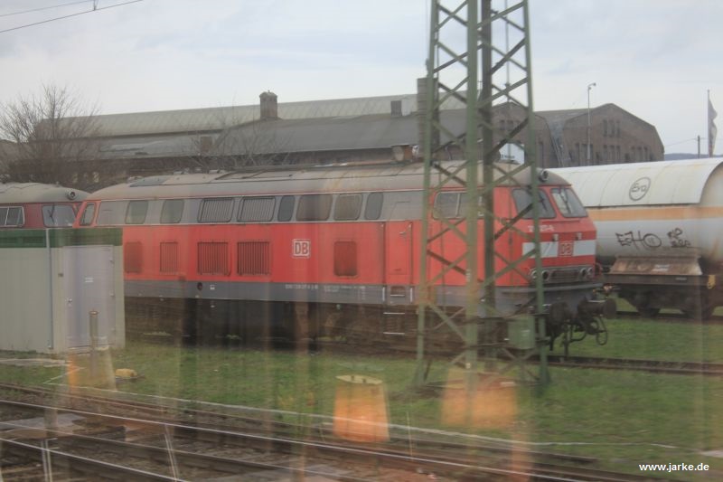 Abschließend noch ein Foto von 218 217-8. Sie war die einzige Loks, die damals zu Versuchszwecken eine beige/rote TEE-Lackierung erhalten hat. (Update Mai 2014: zwischenzeitlich wurde sie von DB Museum Koblenz abgegeben ... nach Nürnberg, wenn ich mich richtig erinnere.) Nach dem Ende ihre Fernreisezüge-Zeit wurde sie vor Nahverkehrszügen eingesetzt. Ihre Einsatzzeit endete vor wenigen Jahren auf der Eifelstrecke Köln - Trier. Gut möglich, das sie einen meiner Züge zur Arbeit oder Freizeitvergnügen gezogen hat. Hoffentlich erfolgt irgendwann eine Restauration im Auslieferungszustand. Die vor wenigen Jahren in TEE-Lack unlackierte 218 105 ist nach Motorentausch (wegen Motorschaden) wieder einsatzbereit und zuletzt in ihrer alten Heimat eingesetzt worden (Update Mai 2014). Im Museum wurde bereits die frühere CityBahn-Lok 218 137 im Orginallack restauriert.