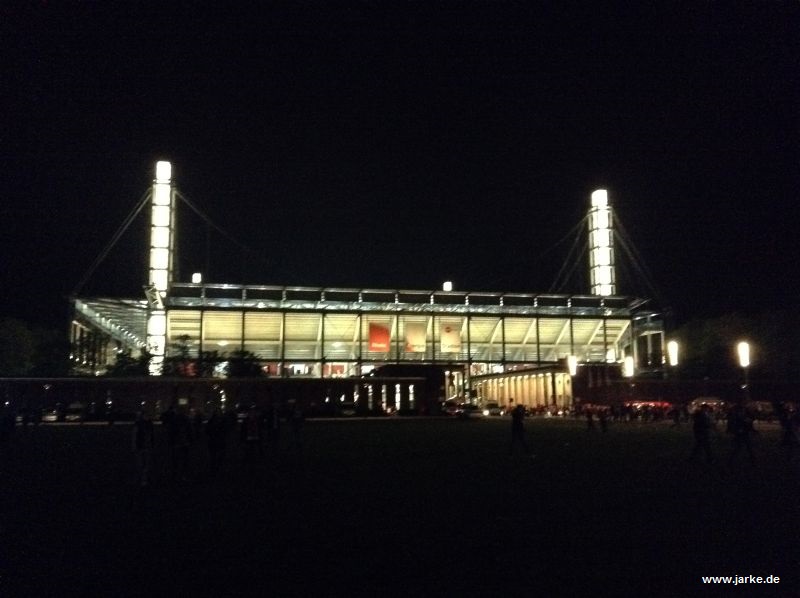 Ein letzter Sieg fehlte am Ostermontag, um die letzte theoretische Chancen des Nicht-Aufstiegs auszuräumen. Nach schwieriger ersten Halbzeit, wo der FC die gefühlten 70% Ballbesitz nicht in gute Torchancen und erzielte Tore umwandeln konnte, gab es sogar noch einen Gegentreffer kurz vor der Pause. Der Joker Marcel Risse - zur Pause eingewechselt - sorgte kurz nach Anpfiff zum verdienten Ausgleich. Nachdem der Schiedrichter zwei klare Elfmeter für den FC nicht gepfiffen hatte, gab es aber einen berechtigten Elfer, den Helmes im Nachschuß verwandelte. Es folgte eine fast 30 minütige Aufsteigsparty, bei der neben den neuen Südtribühnenhit *düp düp düp ... düdeldüp düp düp! 1. Bundesliga ! Kölle ist dabei !* gesungen wurde und Ujah das etscheidende 3:1 erzielte. NACH dem Abpfiff (siehe DUMMdorf, SO wird es gemacht!) gab es eine entspannte Eroberung des Platzes, kein Platzsturm vor dem Abpfiff wie bei gewissen anderen Vereinen. Nach der Rückkehr der Mannschaft auf der Westtribühne feierten die Fans zum einen die Mannschaft, zum anderen den AUFSTÖGER, den neuen Kölner Meistertrainer! Das gemeinsame Singen der Vereinshymne auf dem heiligen Rasen (öhm ... wo ist eigentlich der Elfmeterpunkt vor der Südtribühne hin?), war für mich das emotionalste Erlebnis seit Jahren mit dem FC.
