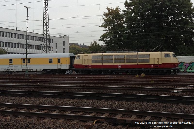 Die Fotos zeigen die 103 184-8 vor IC 2410 am 15.07.2011 in Kölner Hbf, 103 235-8 und 103 113-7 vor IC 119 (Sommer 2013 mit ÖBB Wagen) und 103 113-7 vor IC 2519 (August/September 2013 - 10 tägiger Ersatz für IC 119, mit DB Wagen). Ein Foto zeigt 103 222-6 im Okober 2013 vor einen Meßzug im Bahnhof Köln West. Die Lok ist weiterhin für Tempo 280 zugelassen und (bundesweit ?) vor Meßzügen unterwegs.