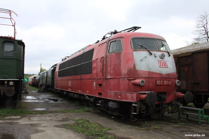 - 103 184 steht im Bw Frankfurt/Main 1. Seit August 2016 steht sie unter db-gebrauchtzug.de zum Verkauf - gegen Gebot. Sie hat bereits zahlreiche Teile gespendet und wird wohl nie mehr fahren. Die im Aw Dessau abgestelle 103 132 soll bereits nahezu leergeräumt sein.