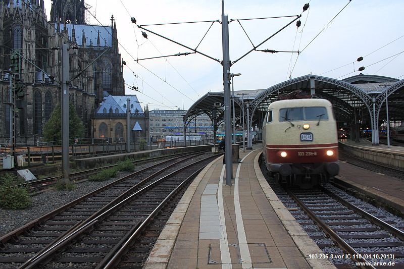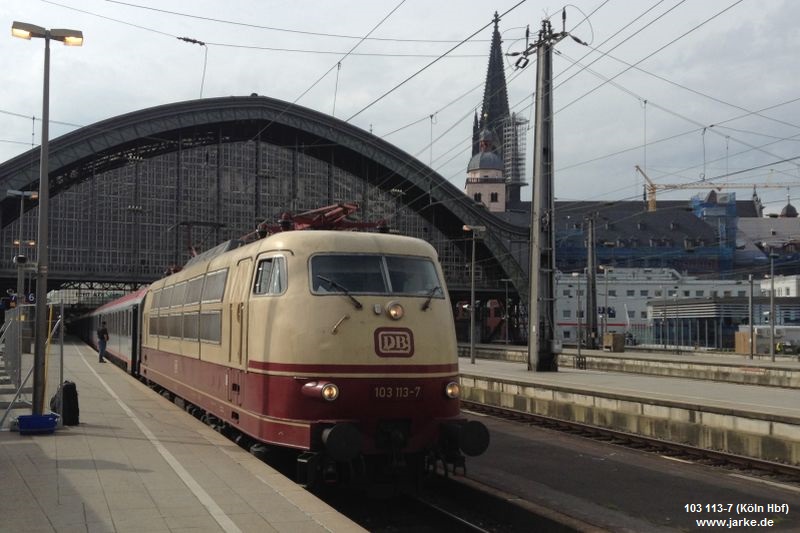 *Update 16.12.2014:* mit dem Fahrplanwechsel im Dezember 2014 sind die Zugleistungen vor dem IC118 und IC119 wieder Geschichte. Eine 103er im Kölner Hauptbahnhof oder auf der Rheinstrecke zu sehen, wird wahrscheinlich nicht mehr möglich sein.