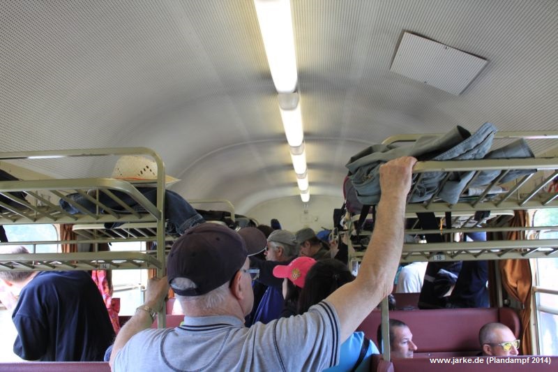Die Fahrpläne (welche Loktypen sind wann für welche Züge vorgesehen) waren rechtzeitig veröffentlich worden. Eine große Hilfe für Fotofreunde, die jenseits der total überlaufenden Bahnhöfe Fotos der dampfenden Stars machen wollten. Allerdings waren nicht nur die Bahnsteige - sondern auch die Züge überfüllt. So wurde mir beispielsweise die Ehre zuteil in einen Silberling-Wagen aus Gerolstein stehenden im Eingangsbereich mitzufahren. Wegen der Zuglok 01 202, die über die überall geöffneten Fenster (jaaa, früher konnte man die Zugwagenfenster richtig öffnen!) deutlich zu hören war, mehr ein Vergnügen als großes Leid. Aufgrund der vielen Züge wae es schwierig die richtigen Züge auszusuchen. Relativ kurze Nebenbahnstrecken, nicht elektrifiziert, teils noch mit alten Formsignalen, auf denen die 52er *stundenlang* unterwegs waren - oder eben doch eine länge Volldampffahrt mit einer 01 auf einer Hauptstrecke ? Eine schwierige Entscheidung. Da ich am Samstag etwas zu spät in Neustadt ankam, bin ich daher *nur" mit 3, statt 4 Dampfzügen gefahren. Bei der Vorbeifahrt am Bw konnte ich 01 118, 41 360 und 52 4867 unter Dampf stehen sehen, aber leider keine Fotos machen. 01 150 war im Museum aus Fotografensicht nicht optimal abgestellt. Später versperrte ein LINT-Triebwagen unfreiwillig die letzte Sicht.