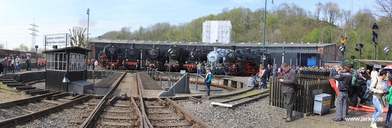 Gleich 3 Dampfloks zeigten im historischen Ambiente was bis in die 70er Jahre bei der Bundesbahn noch Alltag war. Kurze Sonderzüge (gezogen von jeweils einer der 3 Loks) brachten die Gäste vom Bahnhof Dahlhausen bzw. Hauptbahnhof ins Museum. Die jeweils dritte stand für Führerstandsmitfahrten zur Verfügung.