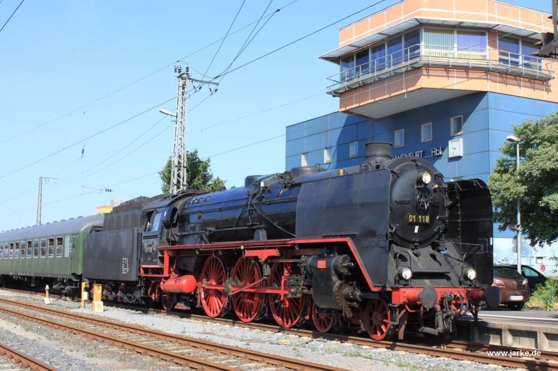 Seit 1981 wird 01 118 für Sonderfahrten genutzt, zunächst auf der Frankfurter Hafenbahn, seit 1985 auch auf öffentlichen Bahnstrecken. - 01 118 - mit dem Main-Neckar-Express unterwegs nach Heilbronn