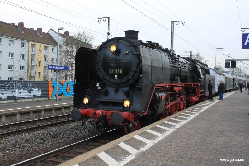 Am 3. April 2016 fuhr die 01 118 der HEF von Frankfurt/Main über Sinnsheim nach Heilbronn und bot entlang der Strecke viele sehenswerte Flüsse und Landschaften.
