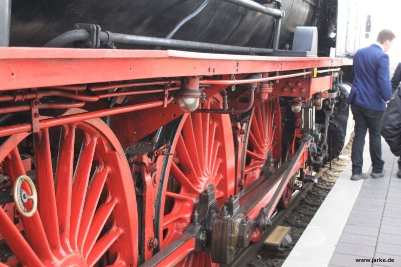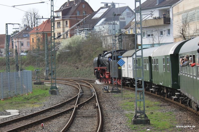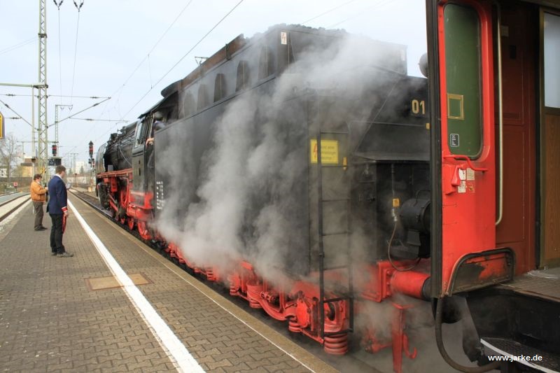 Der Fahrplan wurde zur Sicherheit für die zweite Lok des Vereins geplant, die nur 80 km/h schneller 52er Güterzuglok. Auf der Rückfahrt konnte etwas schneller gefahren werden, weil es auf der Strecke möglich war und sich wohl kein Mitfahrer über die schnellere Rückkehr beschweren dürfte. -15 Minuten kehrte der Zug zum Frankfurter Südbahnhof zurück.