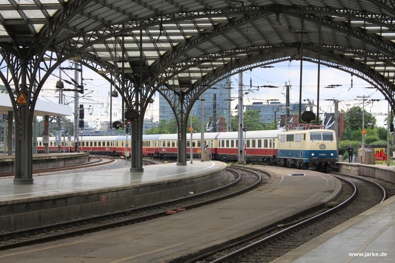 Zum Sommerfest konnten die zahlreichen Gäste mit verschiedenen Sonderzügen anreisen. An beiden Tagen gab es einen aus 5 TEE Wagen der 60er/70er Jahre gebildeten *TEE Rheinpfeil* (bestehend aus Abteilwagen, Großraumwagen und 80er Jahre Rheingold Clubwagen) - gezogen von 111 001 (in der alten beige/blauen Lackierung) am Samstag bzw. E10 1239 am Sonntag. Der Pendelzug Hauptbahnhof <-> Museum bestand aus der zwischenzeitlich wieder reparierten und an die NeSA verkauften TEE-farbenen 218 105-5 und der museumseigenen 140 423, die mit 2 BM 235 IC-Wagen unterwegs waren.